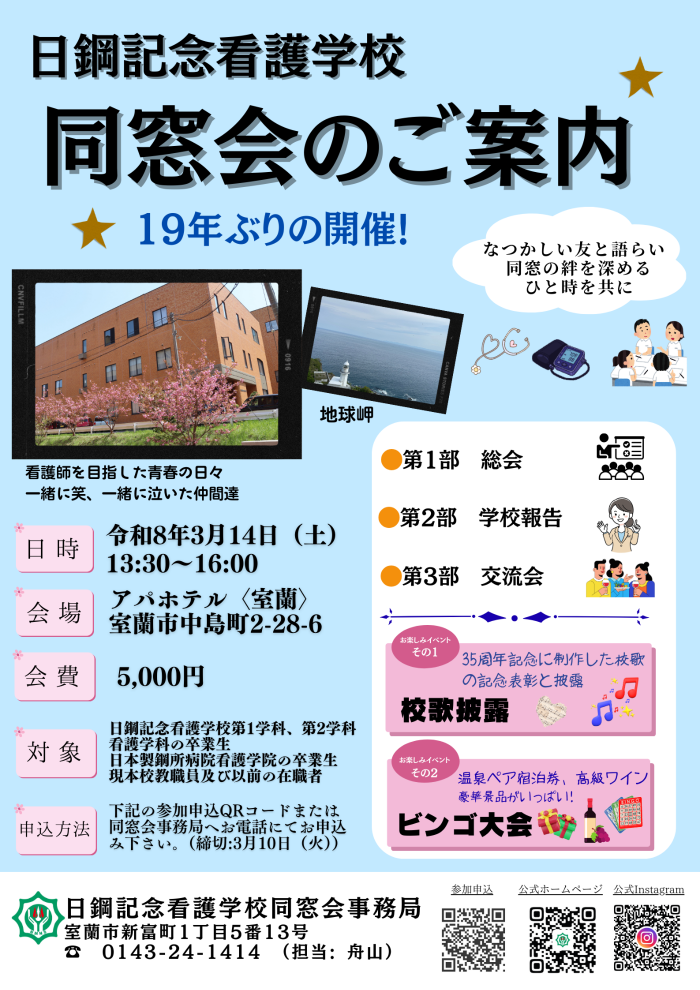 日鋼記念看護学校 同窓生の皆様へ